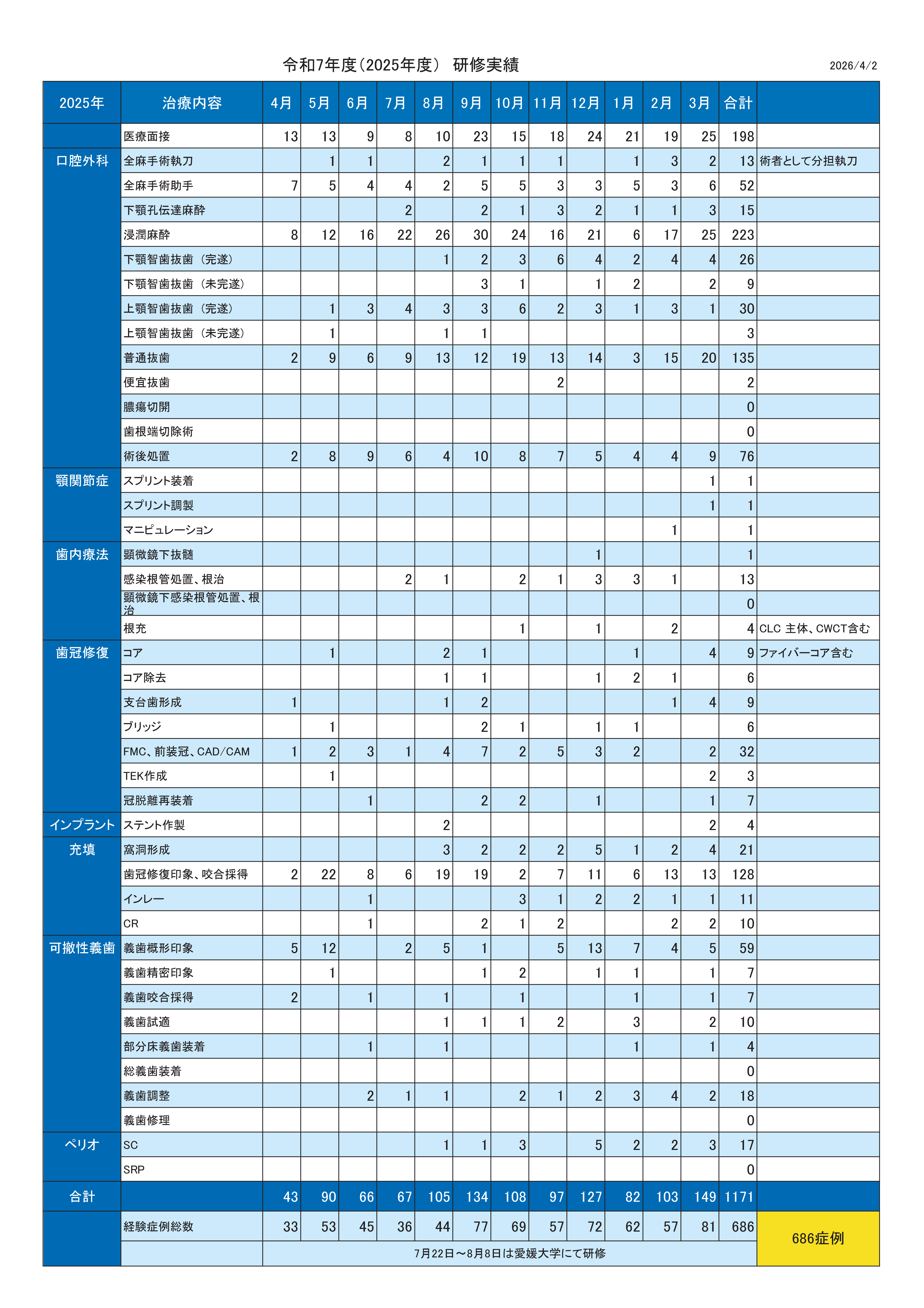 HOME  > ⻭科医師臨床研修医募集 > 研修進捗・実績