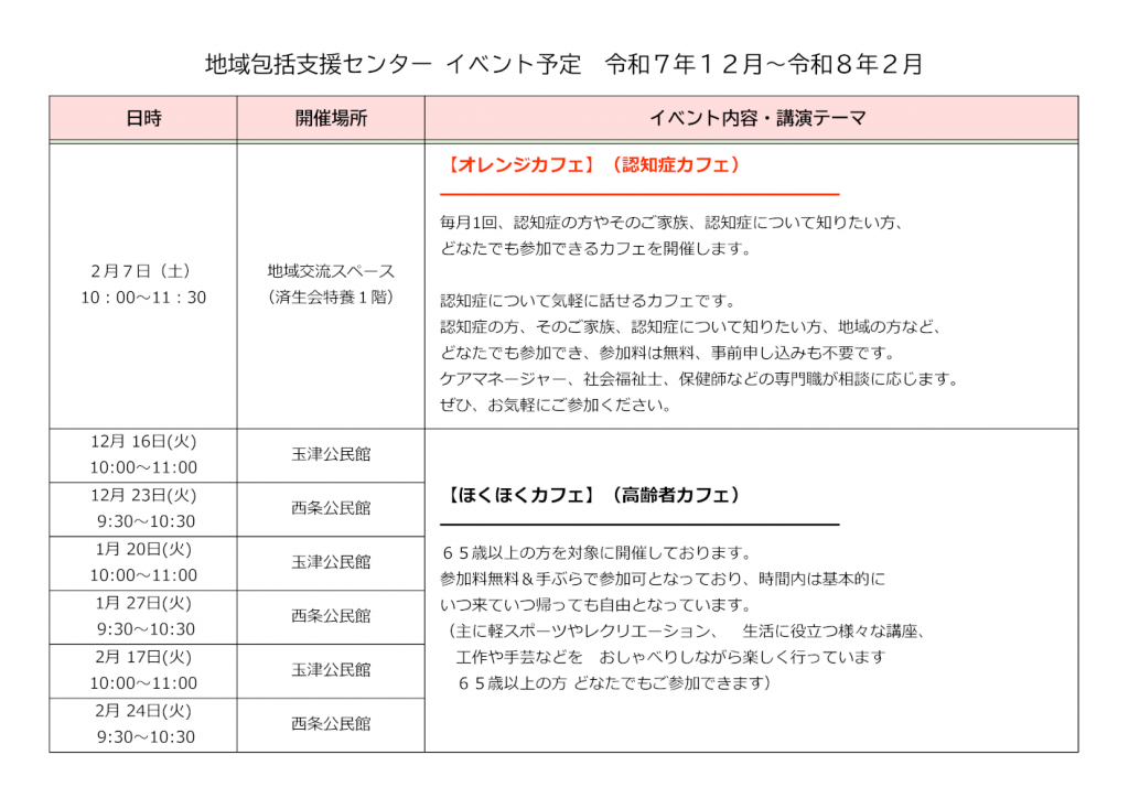 地域包括支援センター イベント予定